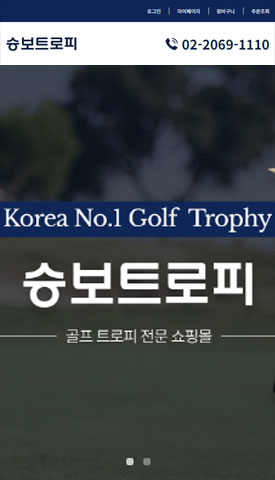 골프 트로피 전문으로 제작 판매하고 있는 승보트로피의 홈페이지(쇼핑몰)를 제작하였습니다. 다양한 기기에서도 서비스를 최적화된 화면으로 이용할 수 있도록 반응형 웹으로 제작하였으며 심플한 메뉴 구성과 쇼핑 편의성을 극대화로 설계된 레이아웃과 디자인으로 제작하였습니다.
