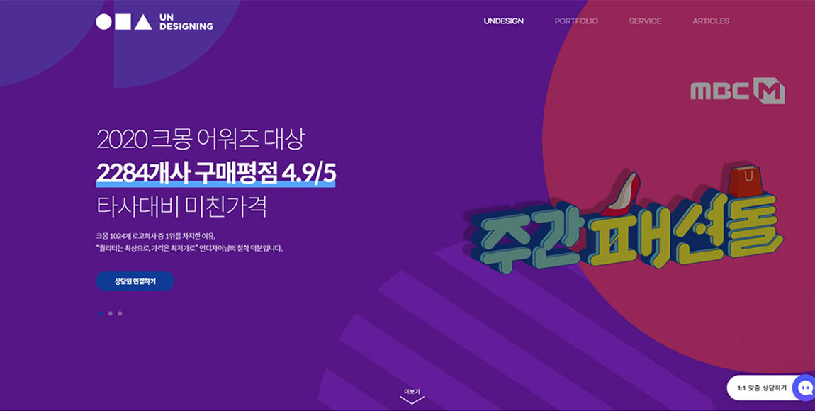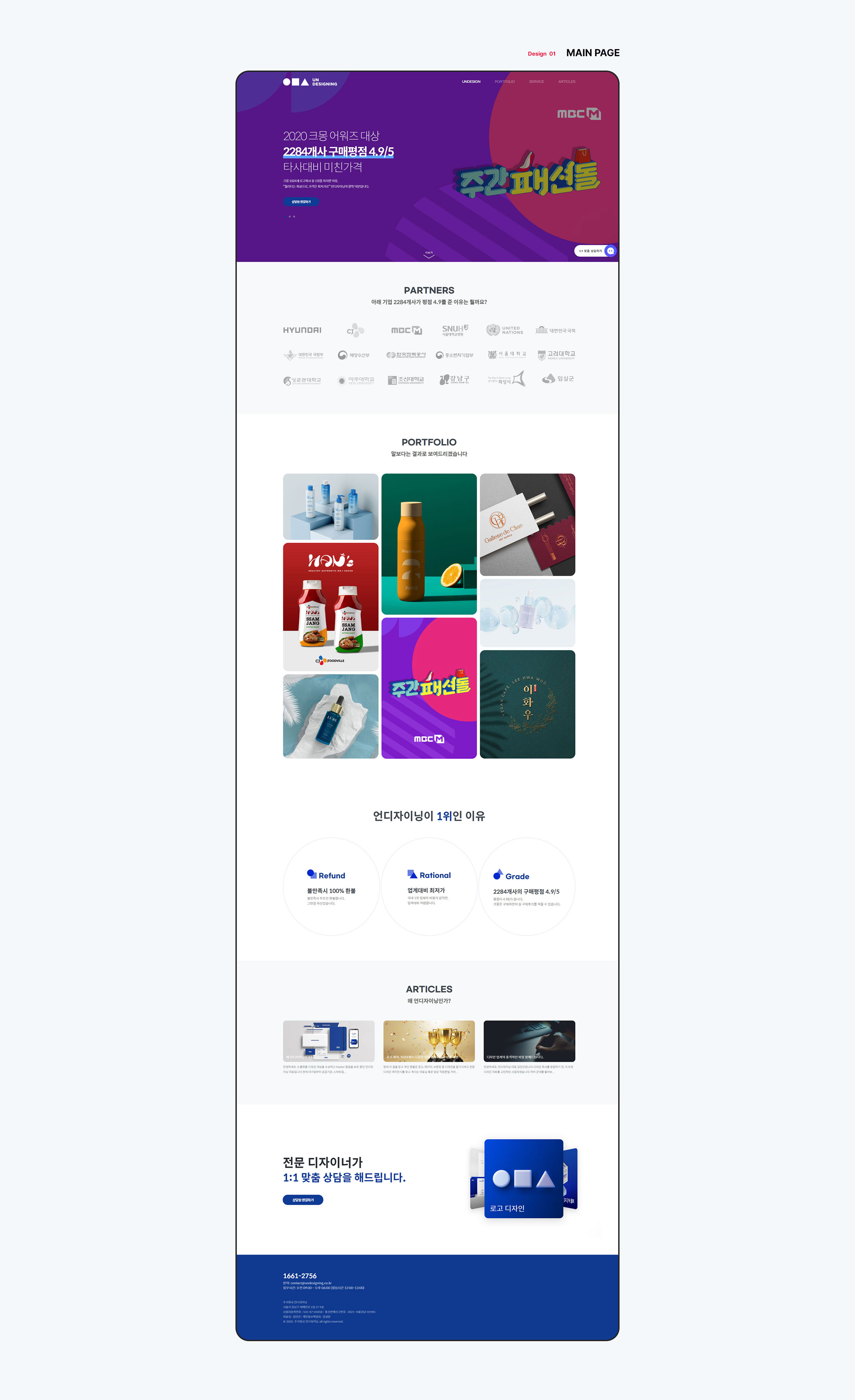 전문가의 관점에서 제안하며 논리적인 디자인으로 업종별 이해도 및 디자인 구상 능력이 전문화한 전문팀으로 구성된 로고, 패키지, 네이밍을 디자인하는 기업 언디자이닝의 공식 홈페이지를 반응형 웹으로 제작하였습니다. 불필요한 요소를 덜어내고 간소한 레이아웃으로 콘텐츠 중심의 디자인 컨셉으로 진행하였으며 폰트와 컬러등으로 디자인의 통일성을 높여 기업의 전문성이 더 돋보일 수 있도록 제작하였습니다.