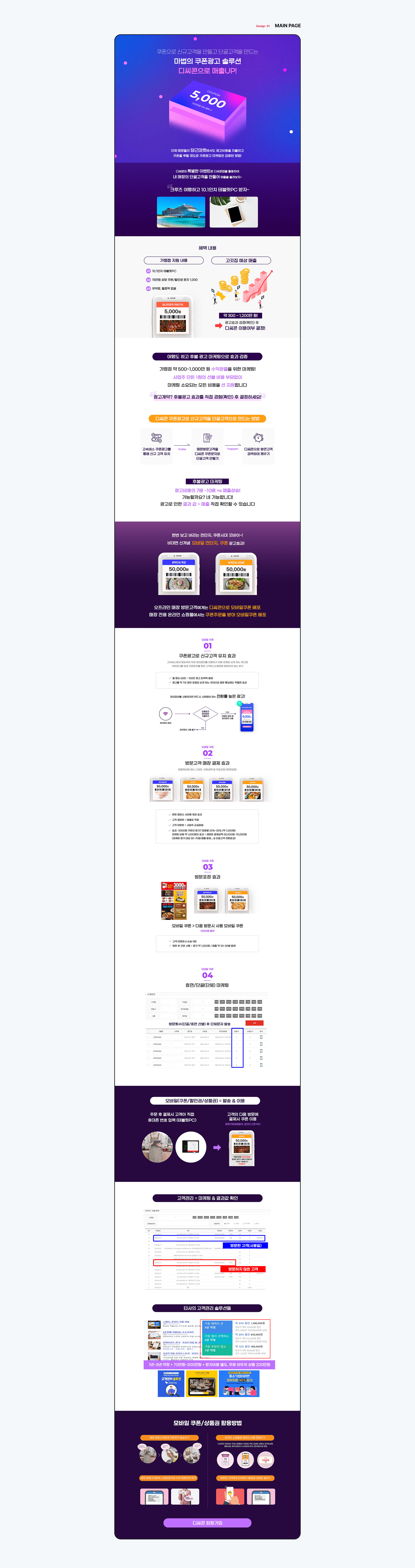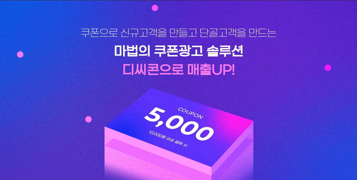 쿠폰으로 신규고객과 단골고객을 만드는 마법의 쿠폰 광고 솔루션을 제시하는 기업 디씨콘의 랜딩사이트를 제작하였습니다. 텍스트와 부연 설명을 도와줄 수 있는 이미지들을 적절히 배치하여 컨텐츠 중심의 디자인 컨셉으로 구성하였습니다.