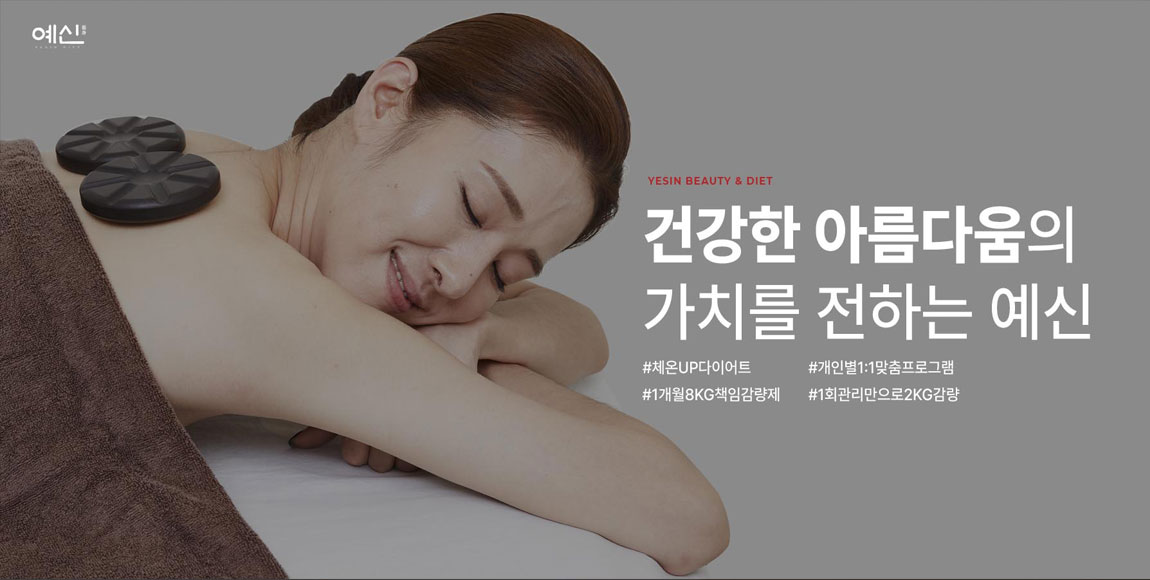 개인별 1:1 맞춤 프로그램, 체온 UP 다이어트, 1회 관리만으로 2kg 감량, 1개월 8kg 책임감량제 다이어트 프로그램과 건강한 아름다움의 가치를 전하는 예신의 랜딩페이지를 제작하였습니다. 사용자가 온전히 정보에 집중할 수 있도록 설계된 레이아웃과 디자인을 적용하여 예신에서 진행하고 있는 다이어트 프로그램이 사용자에게 효과적으로 전달될 수 있도록 구성하였습니다.