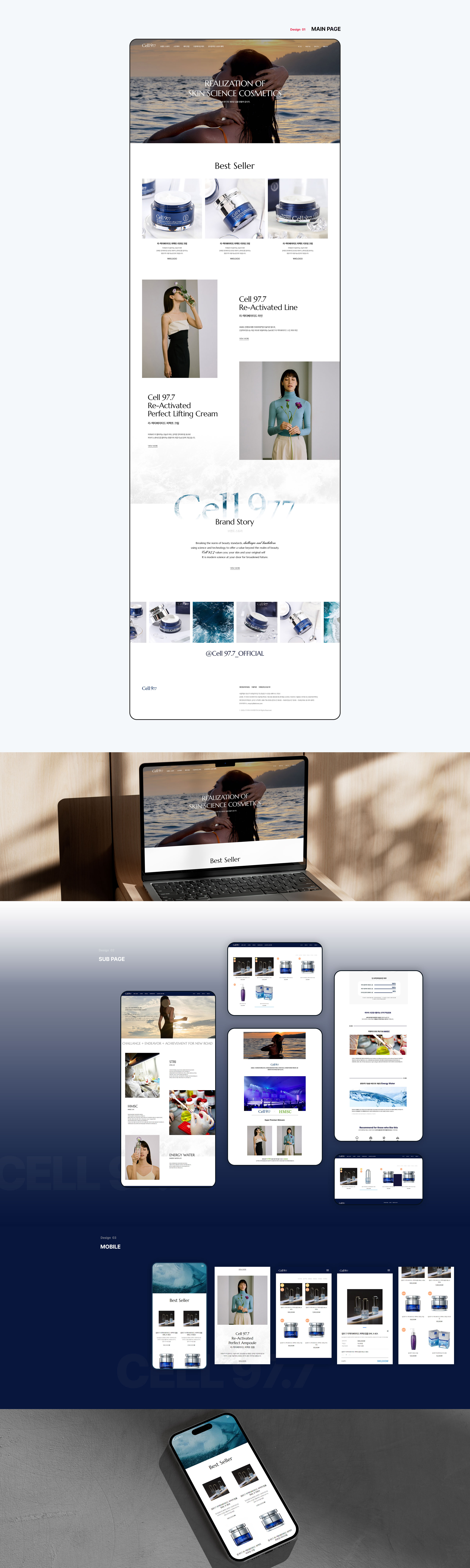 1세대 줄기 세포배양액을 활용하여 국내에서 처음 줄기 세포배양액 앰풀을 런칭하여 STRI의 줄기세포 기술 노하우와 역사 그리고 비전을 담아낸 브랜드 CELL 97.7의 쇼핑몰 사이트를 제작하였습니다. 디자인 콘셉과 타이표를 중심으로 간소한 레이아웃형식으로 제작이 되었으며 전체적인 쇼핑 편의성을 극대화한 UI 및 UX를 적용하였습니다.