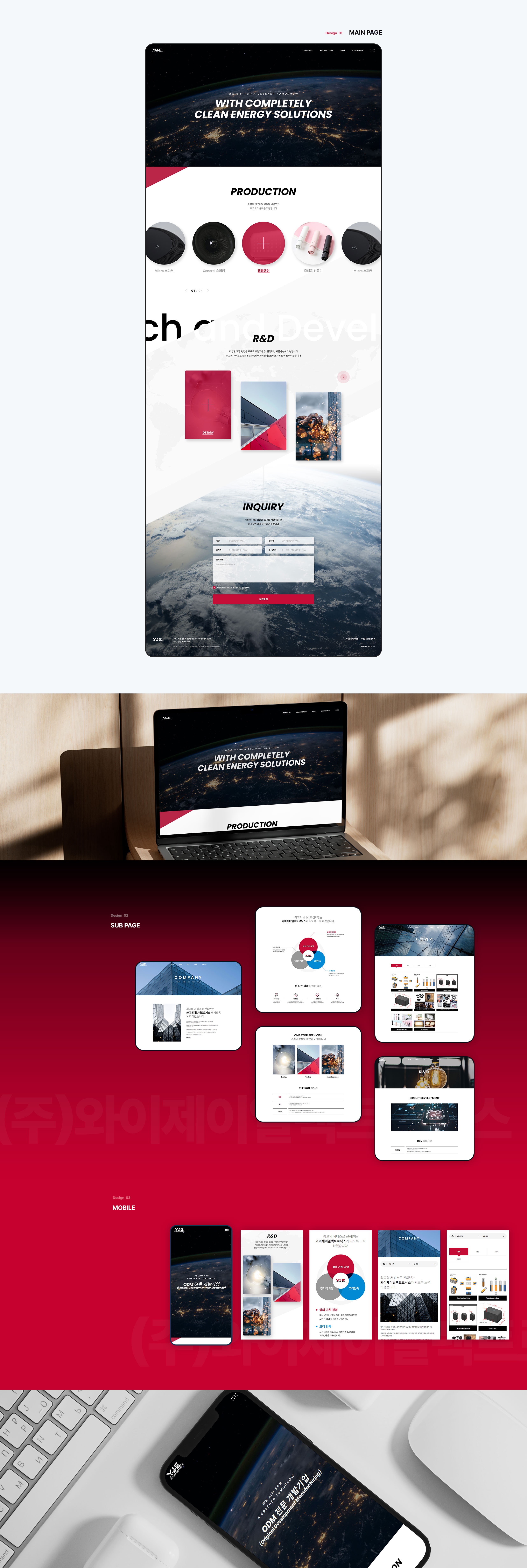풍부한 연구개발 경험을 바탕으로 최고의 기술력을 자랑하고 개발지원 및 안정적인 제품생산이 가능한 (주)와이제이일렉트로닉스의 공식 홈페이지를 제작하였습니다. 반응형 홈페이지로 제작하여 최적화된 화면으로 다양한 기기에서도 서비스를 이용할 수 있도록 하였으며 기업 통합 브랜드 아이덴티티를 유지하는 스타일링을 적용하였고 사용자가 정보에 온전히 집중할 수 있도록 구성된 레이아웃 디자인을 적용하였습니다.