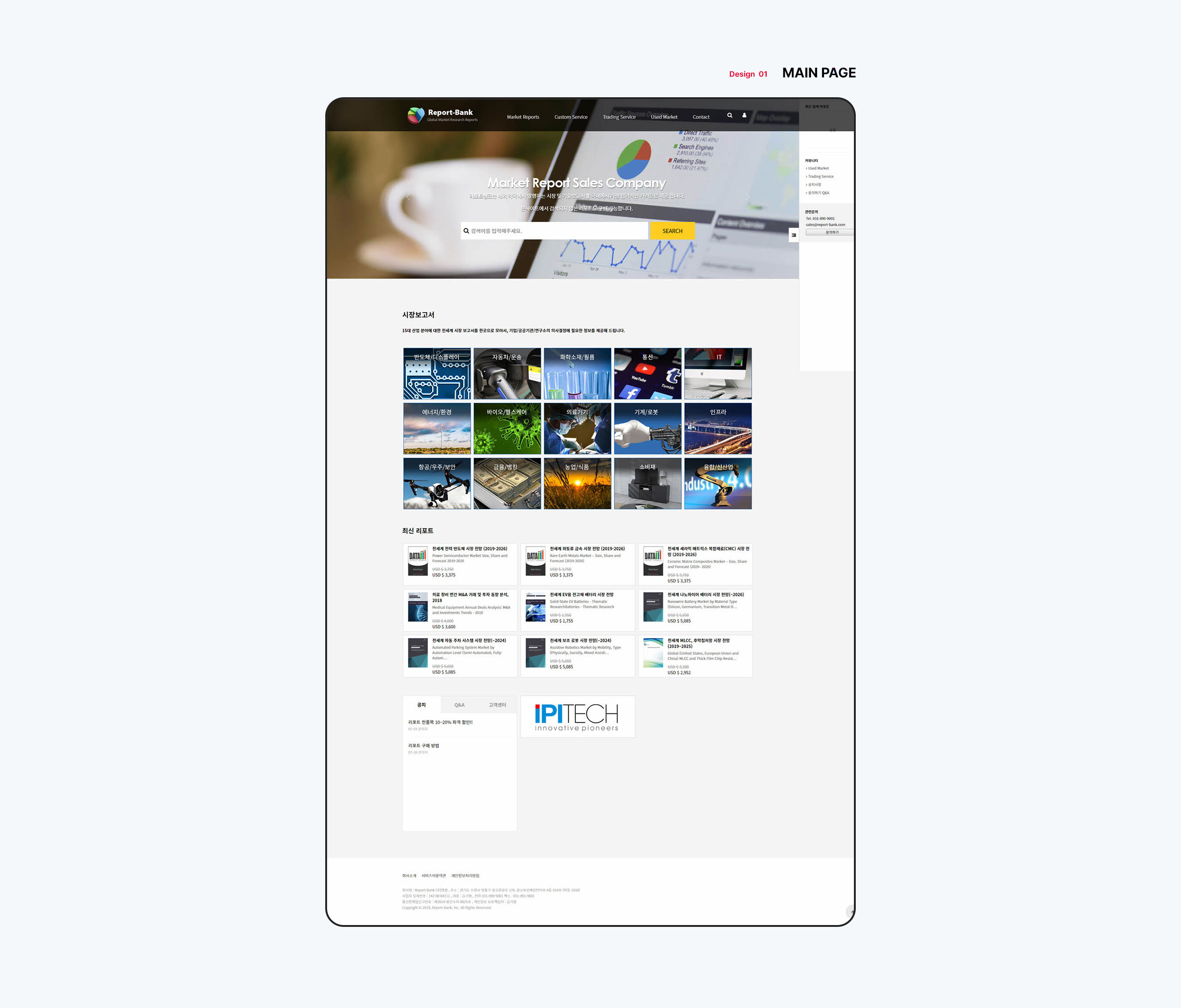 해외 리서치, 컨설팅 기업과 제휴를 통해 국내에서 가장 합리적인 가격으로 시장 정보를 제공하는 리포트뱅크의 공식 홈페이지를 제작하였습니다. 간소화한 레이아웃으로 구성하여 콘텐츠 중심으로 사용자에게 명확한 정보전달을 목표로 제작하였습니다.