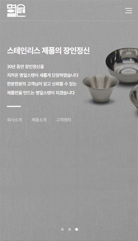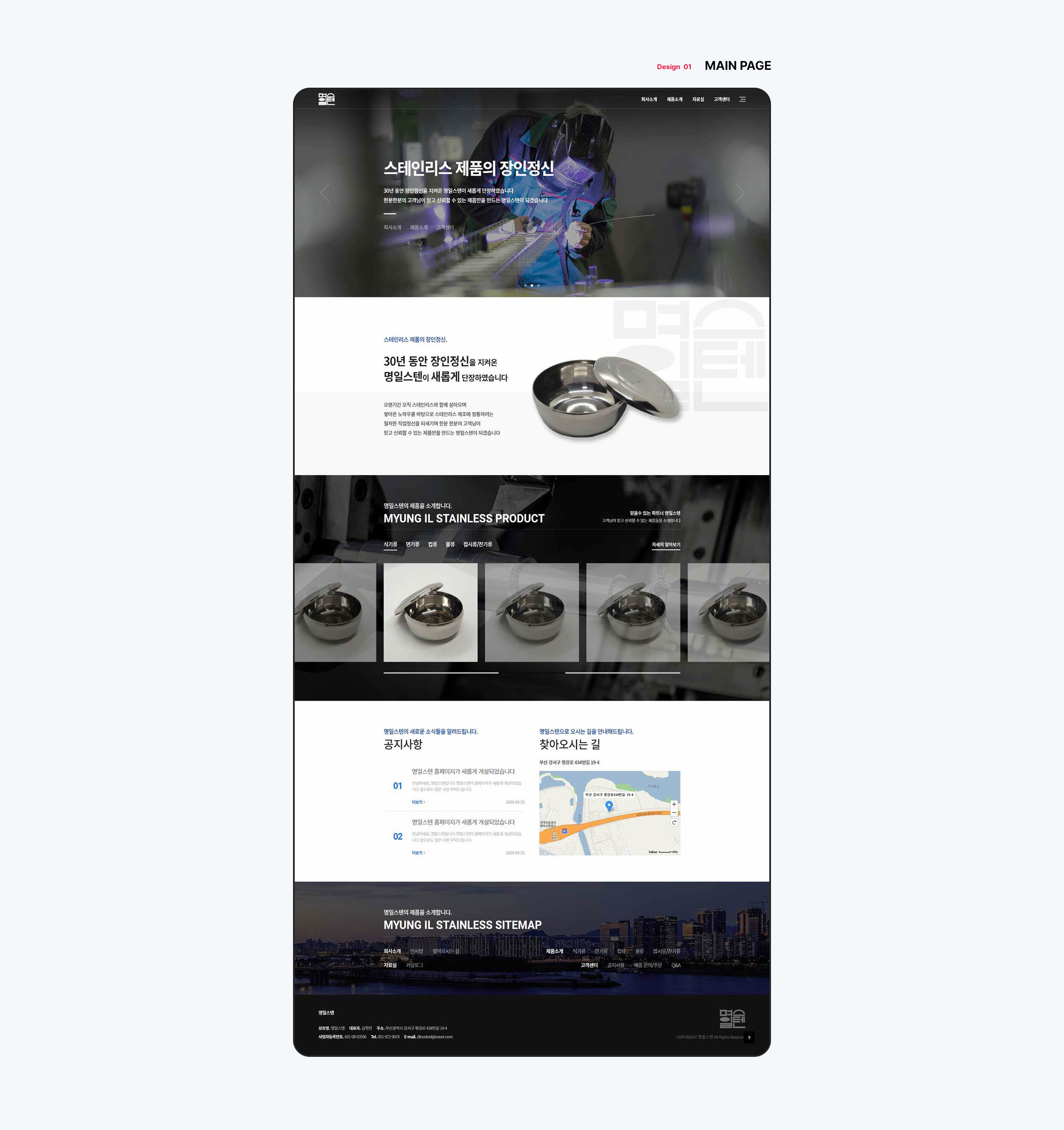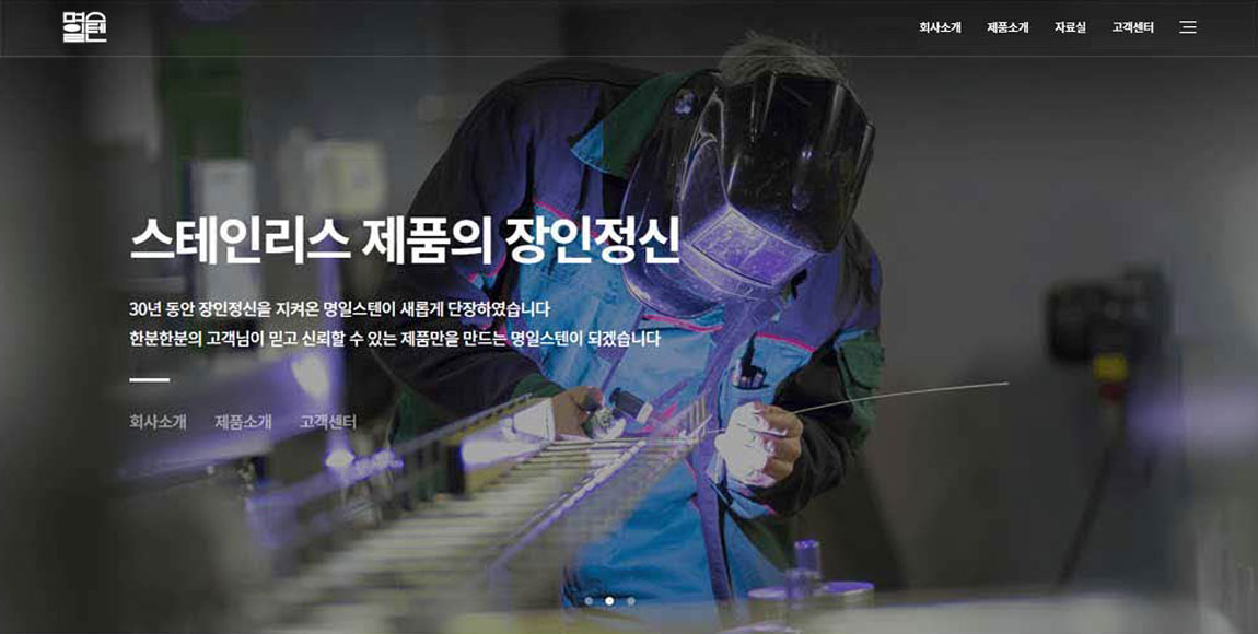 30년 동안 장인정신을 지켜온 한분 한분의 고객님이 믿고 신뢰할 수 있는 제품만을 만드는 기업 명일스텐의 기업 공식 홈페이지를 제작하였습니다. 반응형 웹으로 제작하여 최적화된 화면으로 다양한 기기에서도 서비스를 이용할 수 있도록 하였으며 정보전달이 수월하도록 간단하고 심플하게 구성하였으며 제품을 한눈에 확인할 수 있도록 제작하였습니다.
