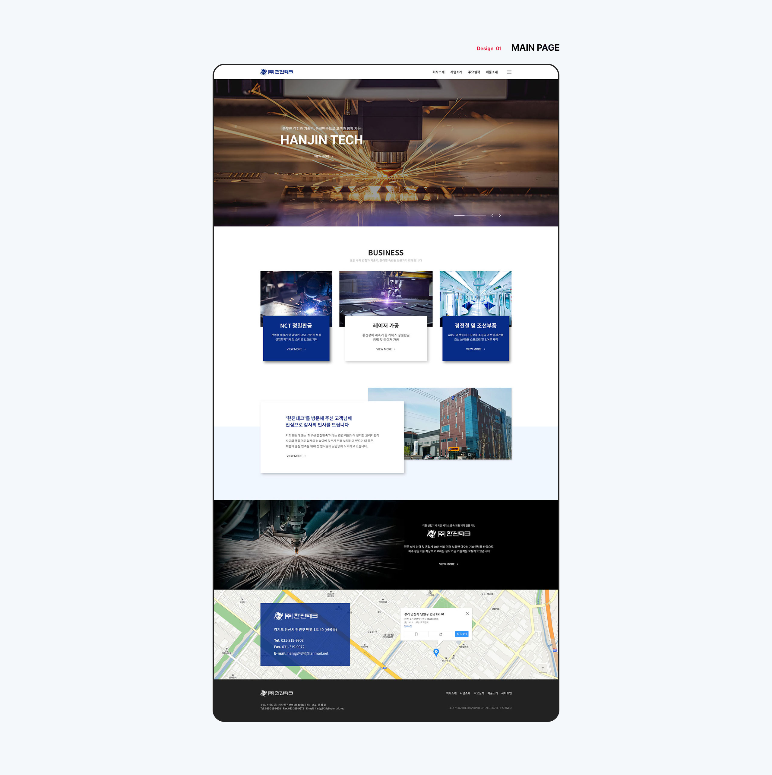 `최우선 품질 만족’ 이라는 경영 이념 아래 철저한 고객지향적 사고와 행동으로 업체의 눈높이에 맞추기 위해 노력하며 레이저 가공, NCT 정밀판금, 경전철 및 조선 부품을 제작하고 있는 기업 한진테크의 공식 홈페이지를 반응형 웹으로 제작하였습니다. 기업 아이덴티티가 담긴 컬러 적용과 심플한 레이아웃으로 세련되면서 전문성을 강조하는 것을 목표로 제작하였습니다.