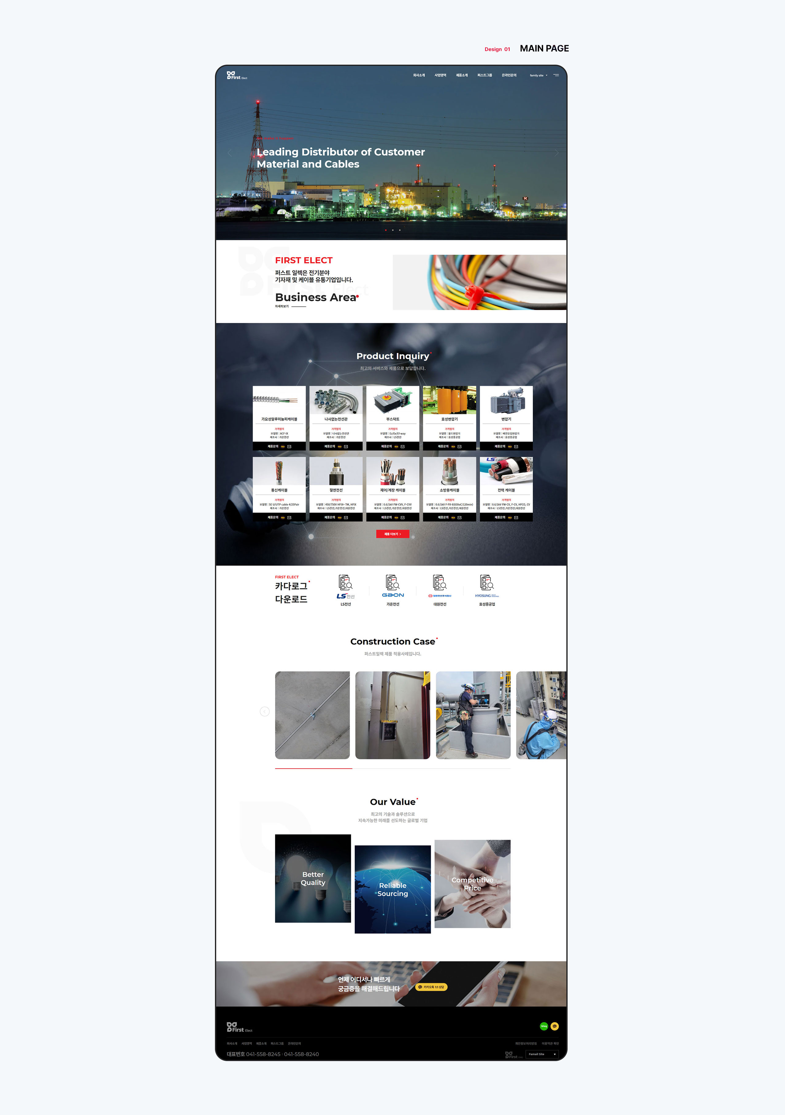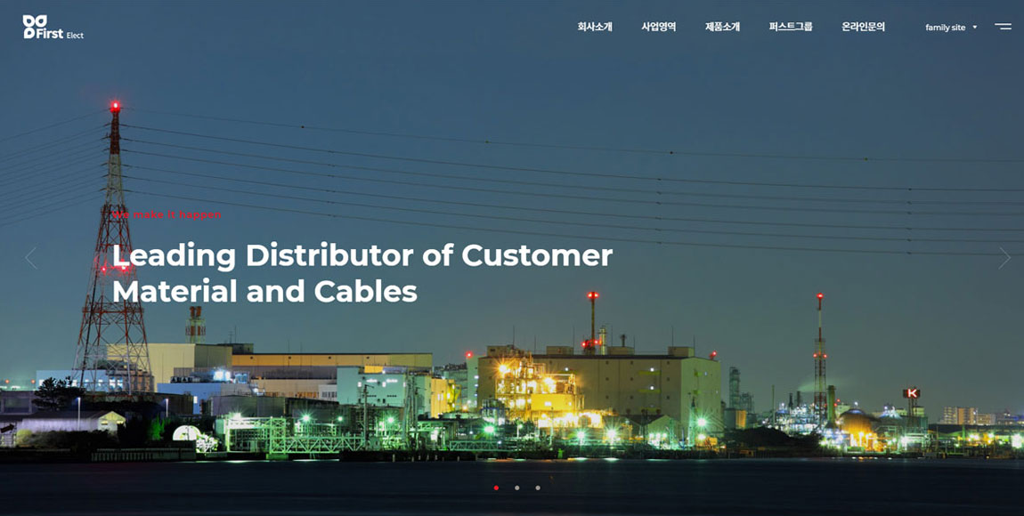 품질과 기술력을 갖춘 케이블을 선별 유통함으로써 더 나은 내일에 이바지하는 것을 철학으로 산업 전반에 필요한 자재를 유통 조달하고 있는 기업 퍼스트일렉의 공식 홈페이지를 다양한 기기에서도 서비스를 최적화된 화면으로 이용할 수 있도록 반응형 웹으로 제작하였습니다. 현대적이며 직관적인 레이아웃으로 아이덴티티가 담긴 컬러사용으로 사용자들의 이목을 집중할 수 있도록 하였으며 이미지와 텍스트를 적절히 배치하여 기업의 전문성을 돋보이게 하였습니다.