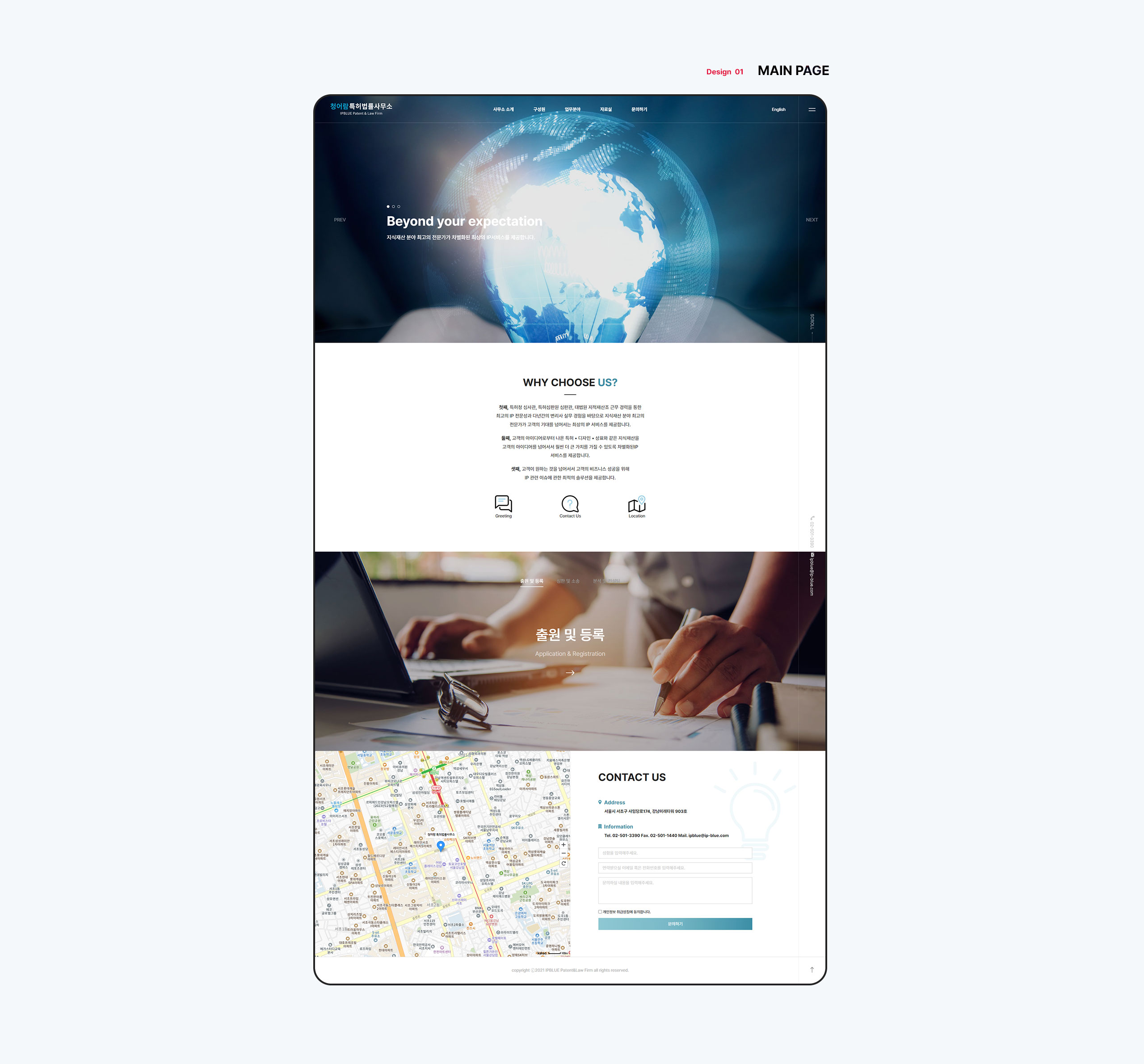 지식재산 분야 최고의 전문가가 차별화된 최상의 IP 서비스를 제공하는 법률사무소 청어람특허법률사무소의 공식사이트를 반응형 웹으로 제작하였습니다. 반응형 웹으로 제작하여 최적화된 화면으로 다양한 기기에서도 서비스를 이용할 수 있도록 하였으며 사용자가 정보에 온전히 집중할 수 있도록 한 레이아웃과 정제된 폰트와 색감 등을 차분하면서 심플하게 법률사무소의 전문성 강조를 목표로 제작하였습니다.
