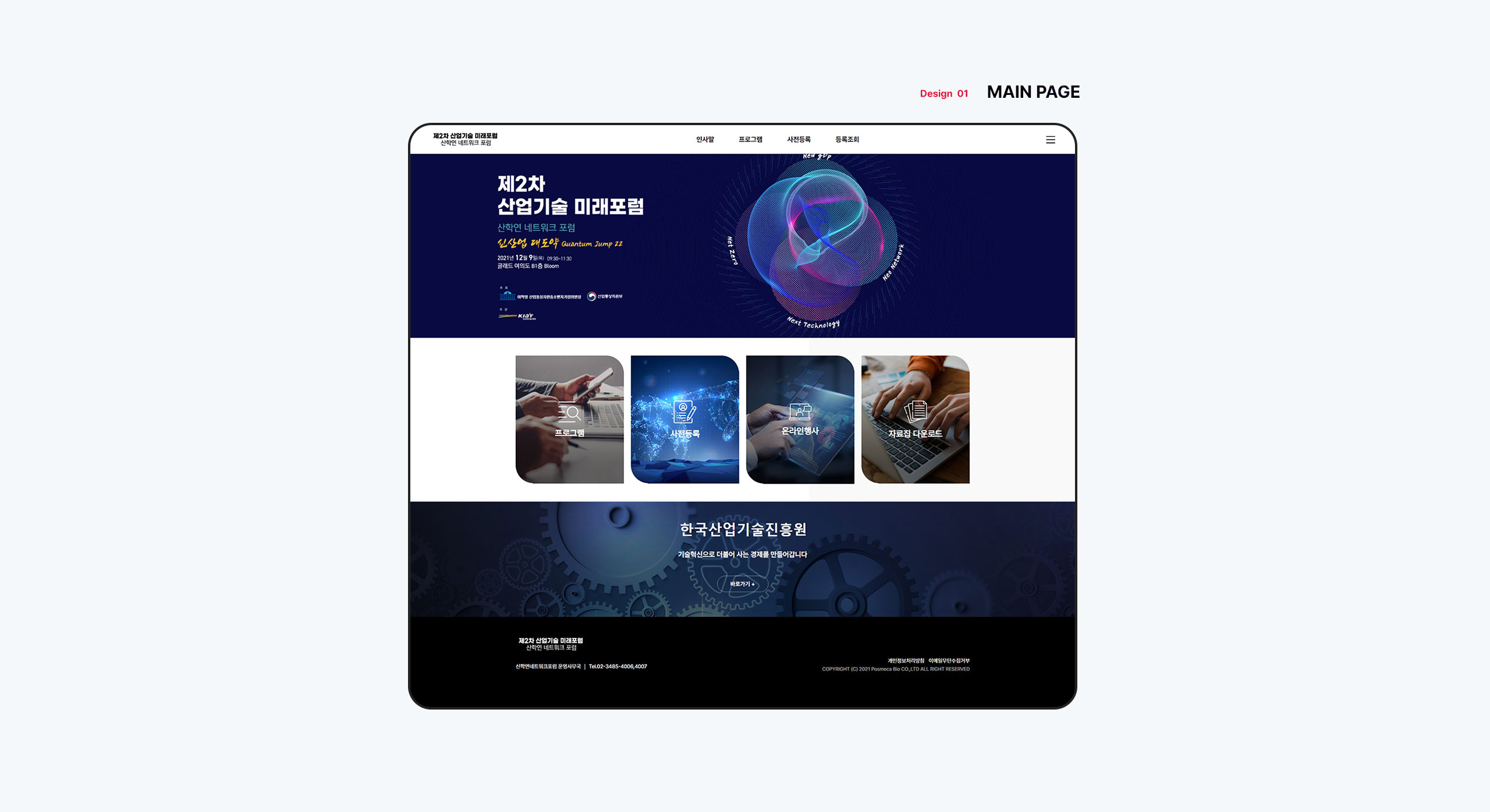 기술혁신으로 더불어 사는 경제를 만들기 위한 산업기술 미래 포럼 신학연네트워크포럼의 공식 홈페이지를 반응형 웹으로 제작하였습니다. 반응형 웹으로 제작하여 최적화된 화면으로 다양한 기기에서도 서비스를 이용할 수 있도록 하였으며 색감과 톤으로 깔끔한 느낌을 부각하고자 했으며 최대한 심플한 방향으로 정보전달과 전문성을 강조하는 것을 목표로 제작하였습니다.