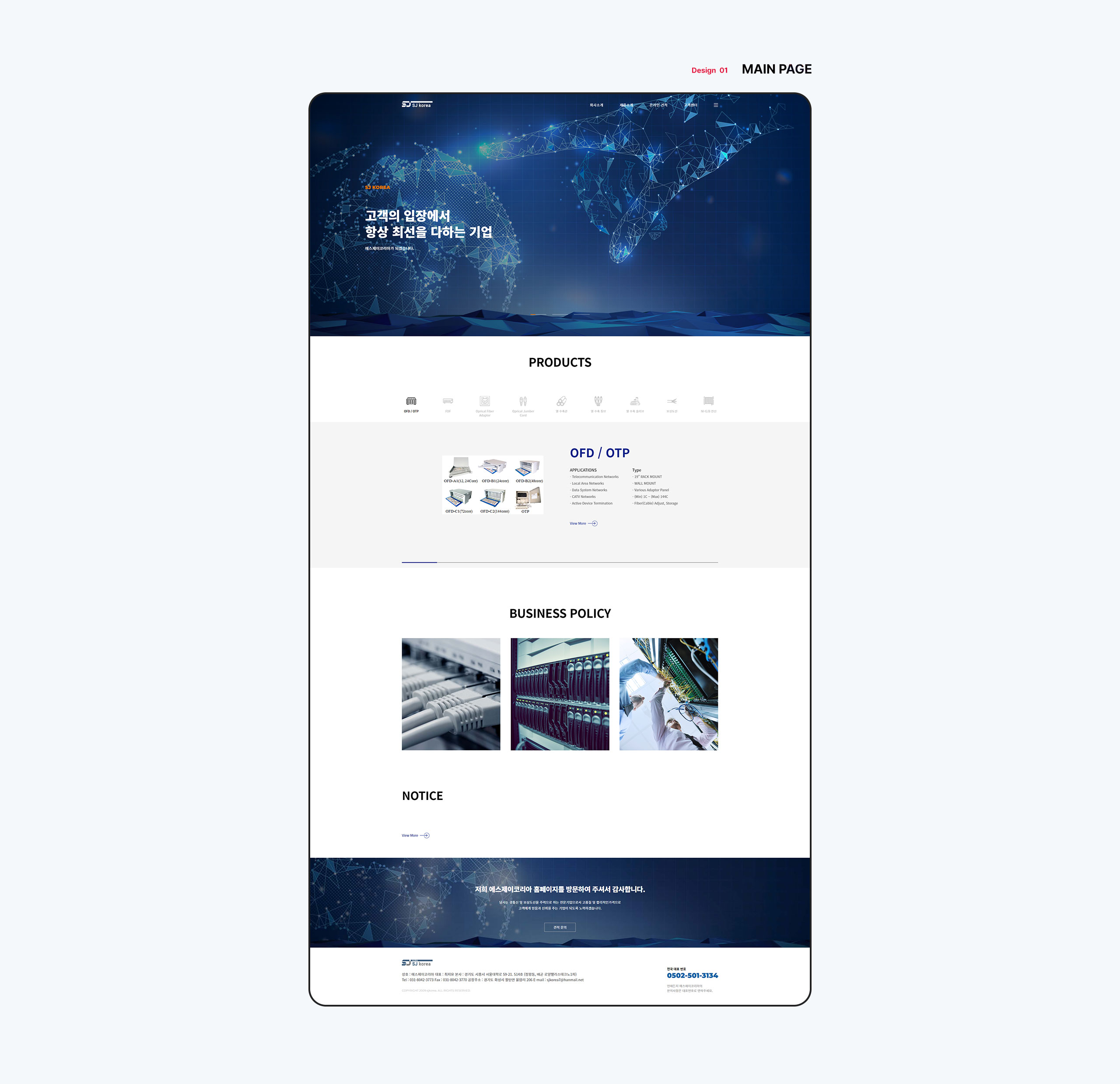 광통신 및 보상도선을 주력으로 고품질 및 합리적인 가격으로 고객에게 믿음과 신뢰를 주는 기업이 되도록 노력하는 기업 SJ코리아의 기업공식 홈페이지를 반응형 웹으로 제작하였습니다. 직관성과 일관된 디자인으로 사용자가 쉽게 정보를 접하고 집중할 수 있게 레이아웃과 디자인을 적용하였습니다.