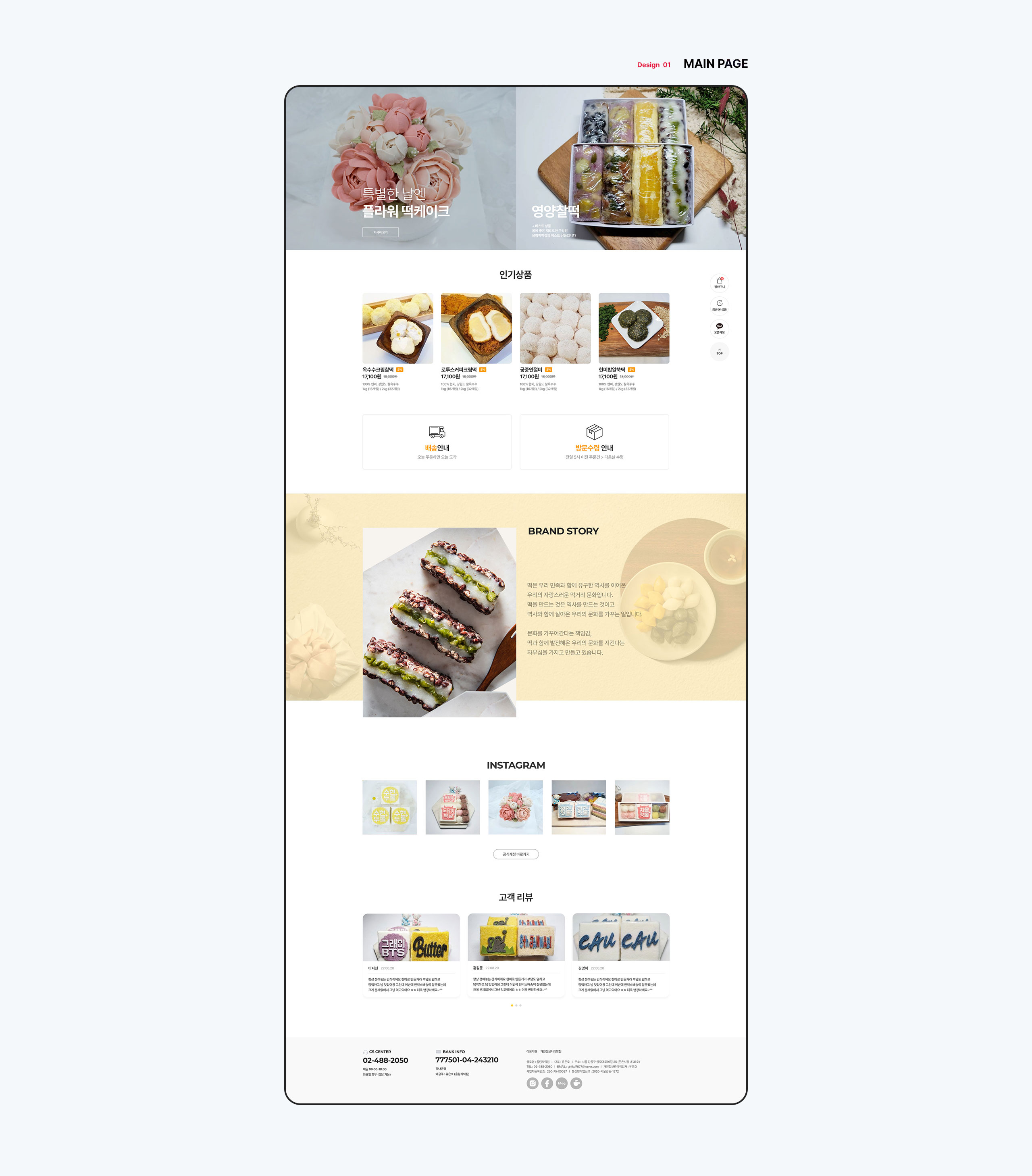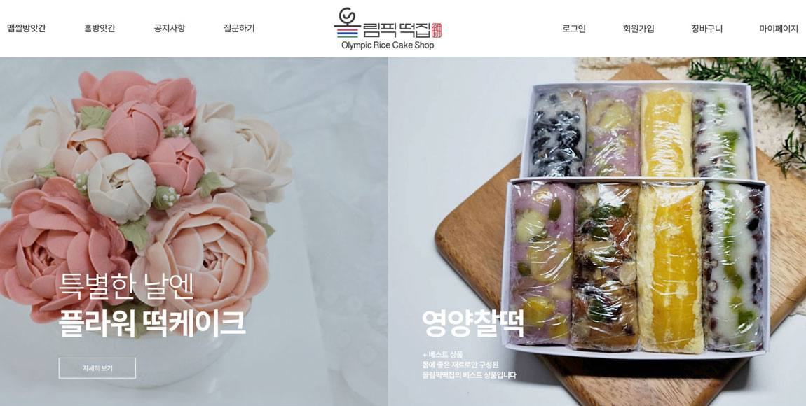 떡은 우리민족과 함께 유구한 역사를 이어온 먹거리문화라 여기며 문화를 가꾸어 간다는 책임감을 가지고 떡을 판매하고 있는 올림픽떡집의 홈페이지(쇼핑몰)을 제작하였습니다. 심플한 메뉴 구성과 쇼핑 편의성을 극대화로 설계된 레이아웃과 디자인으로 제작하였습니다.